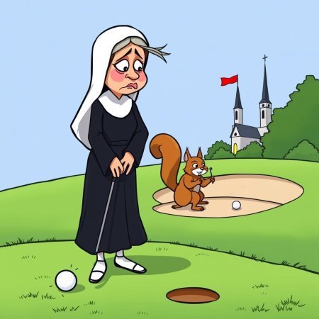 “No, I managed to stay calm,” the nun replies. “Then I hit a solid 8-iron to the center of the green—but out of nowhere, a squirrel ran up, grabbed the ball, and dragged it into the bunker.”