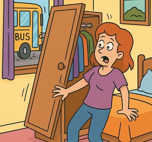 Just then, her husband unexpectedly came home. He heard voices in the bedroom, rushed in, flung the wardrobe door open—and found the repairman standing awkwardly inside.