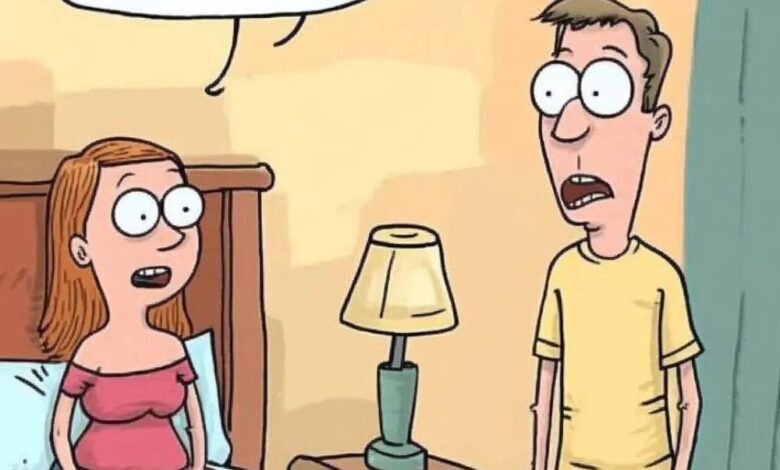 Around 2 a.m., the husband got up, went to the kitchen, and came back with a sandwich and a beer.