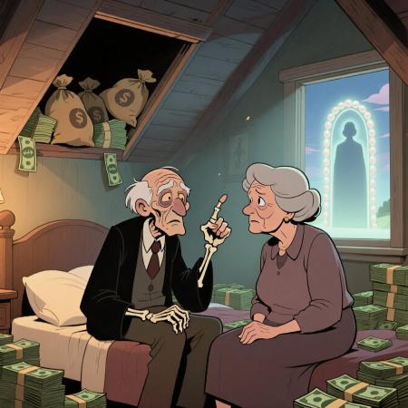 Weeks later, after the funeral, his wife went to clean the attic—and there sat the untouched money bags.