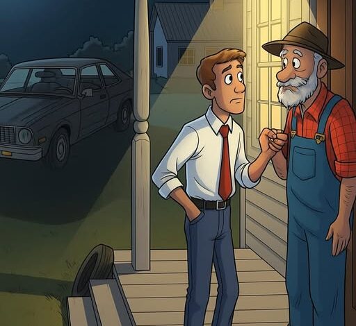 The salesman blinked, paused, and then asked, “So… how far is it to the next farmhouse?”