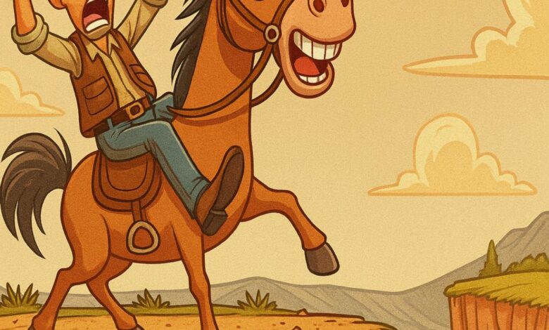 Jack agrees and takes the horse for a test ride. It runs like the wind, until Jack suddenly notices a cliff ahead.