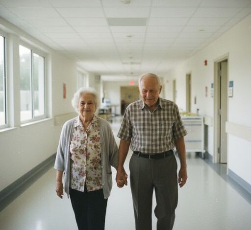 A few days later, at the hospital, they took one final walk down the hallway—hand in hand, moving slow but perfectly in sync. To strangers it looked ordinary, but to me, it was a love story on display.