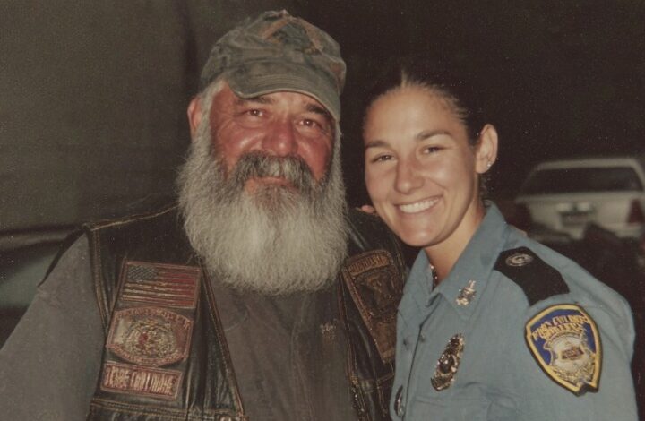 Now we ride together sometimes. Cop and biker. Father and daughter. She started a program connecting police and bikers to find missing kids.
