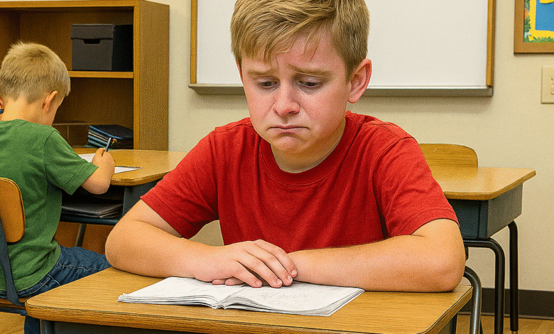 Just then, Susie trips in front of the teacher, dumping a bowl of water into his lap. Chaos erupts—but instead of ridicule, he’s met with sympathy. The teacher sends him to change, and classmates reassure him. Meanwhile, Susie takes the blame.