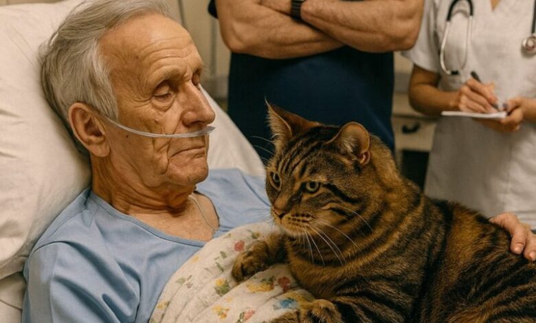 In the quiet hum of the ICU, an elderly man found comfort not in medicine, but in the soft presence of his cat. For a month, she had been his only steady visitor, curling up on his stomach as if to ease his pain with her purrs. The staff grew used to the sight—a small touch of warmth in the sterile hospital world.