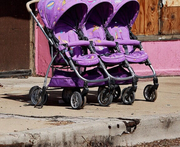 I came across a vacant triple stroller sitting beside an old, deserted store when a sudden burst of infant cries echoed from inside the building.