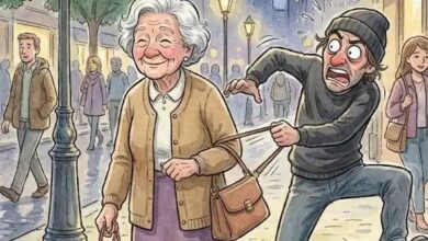 An elderly woman was taking her dog for an evening walk. A young man came up, snatched her purse,…